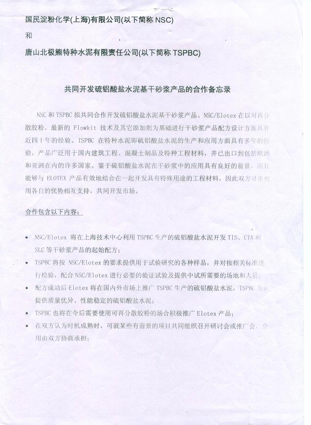 與國民淀粉(上海)公司聯(lián)合開發(fā)干砂漿